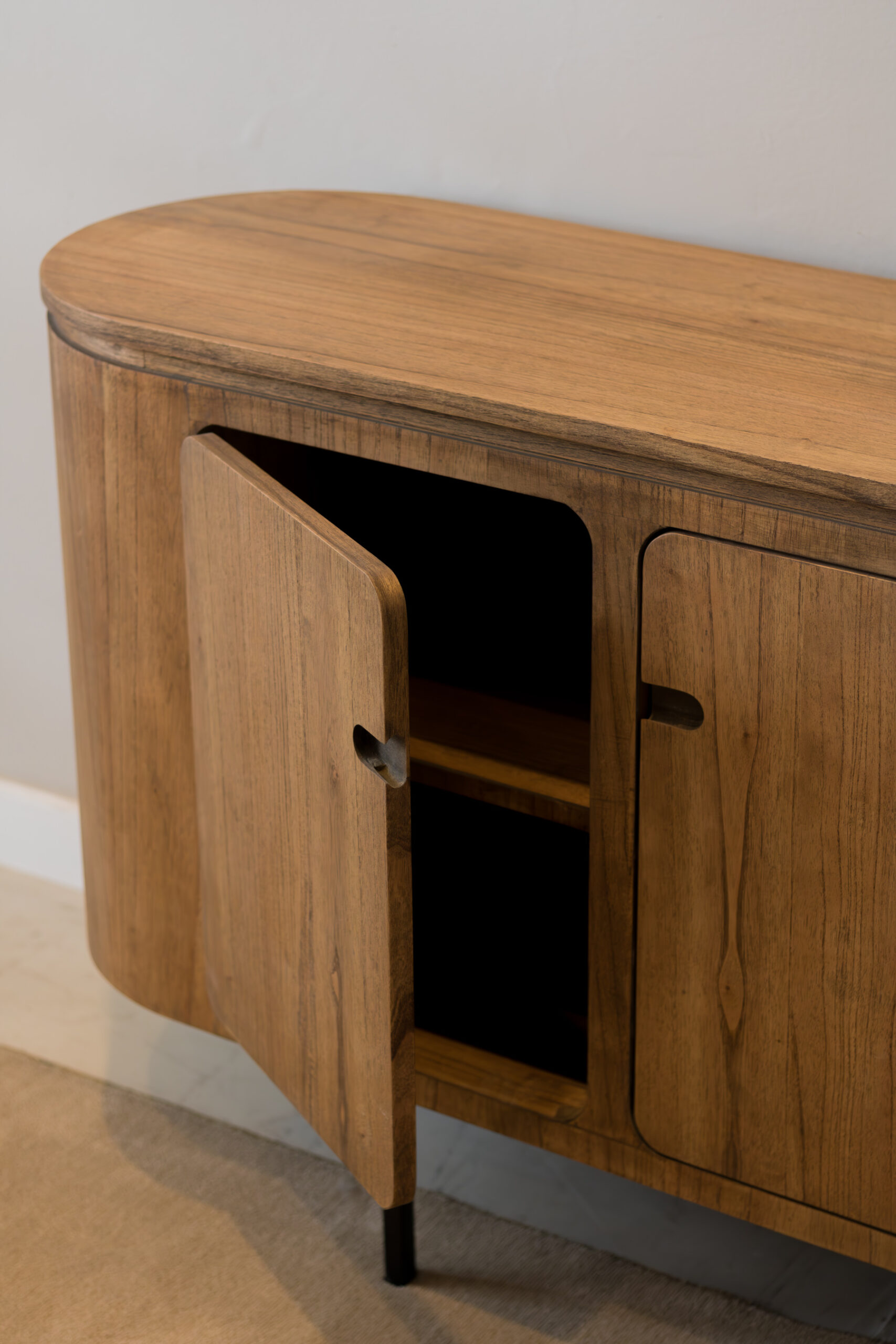 Su estructura sólida y su frente curvo aportan una estética refinada, ideal para livings, comedores o áreas de recepción.