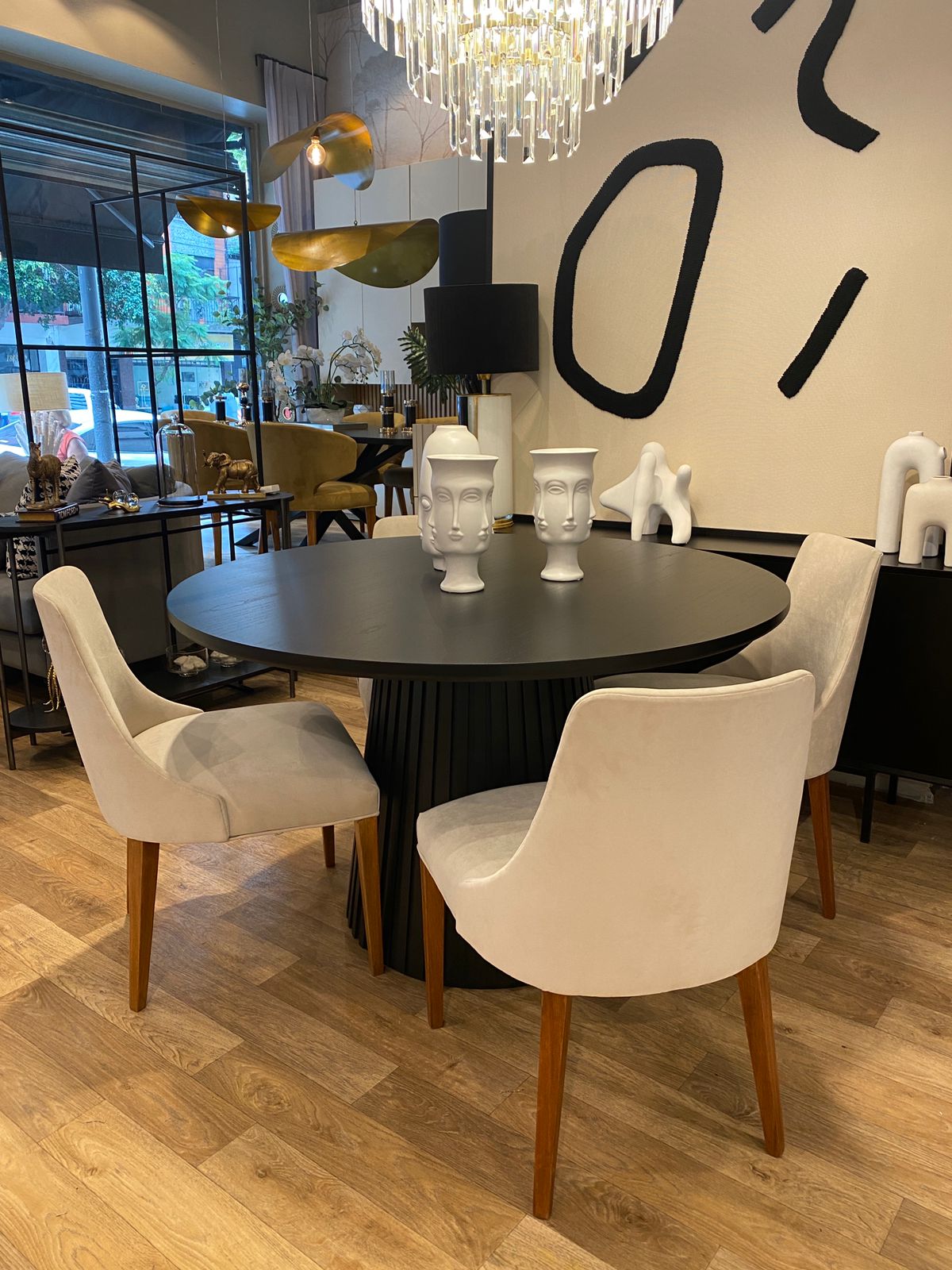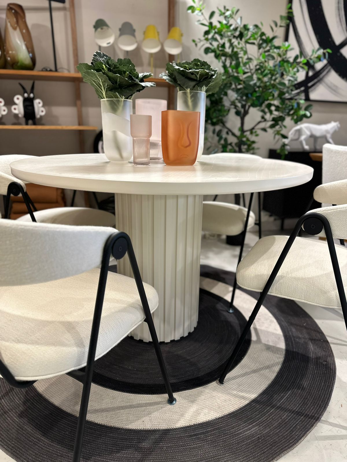 La Modena Cónica combina una tapa ovalada con base central acanalada, creando una silueta elegante y moderna.